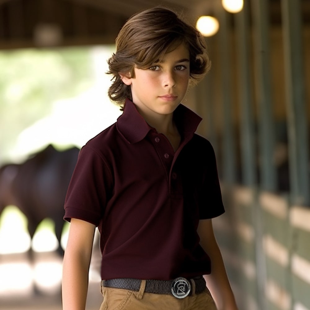Customizable Youth UPF 30+ Equestrian Polo Shirt Maroon