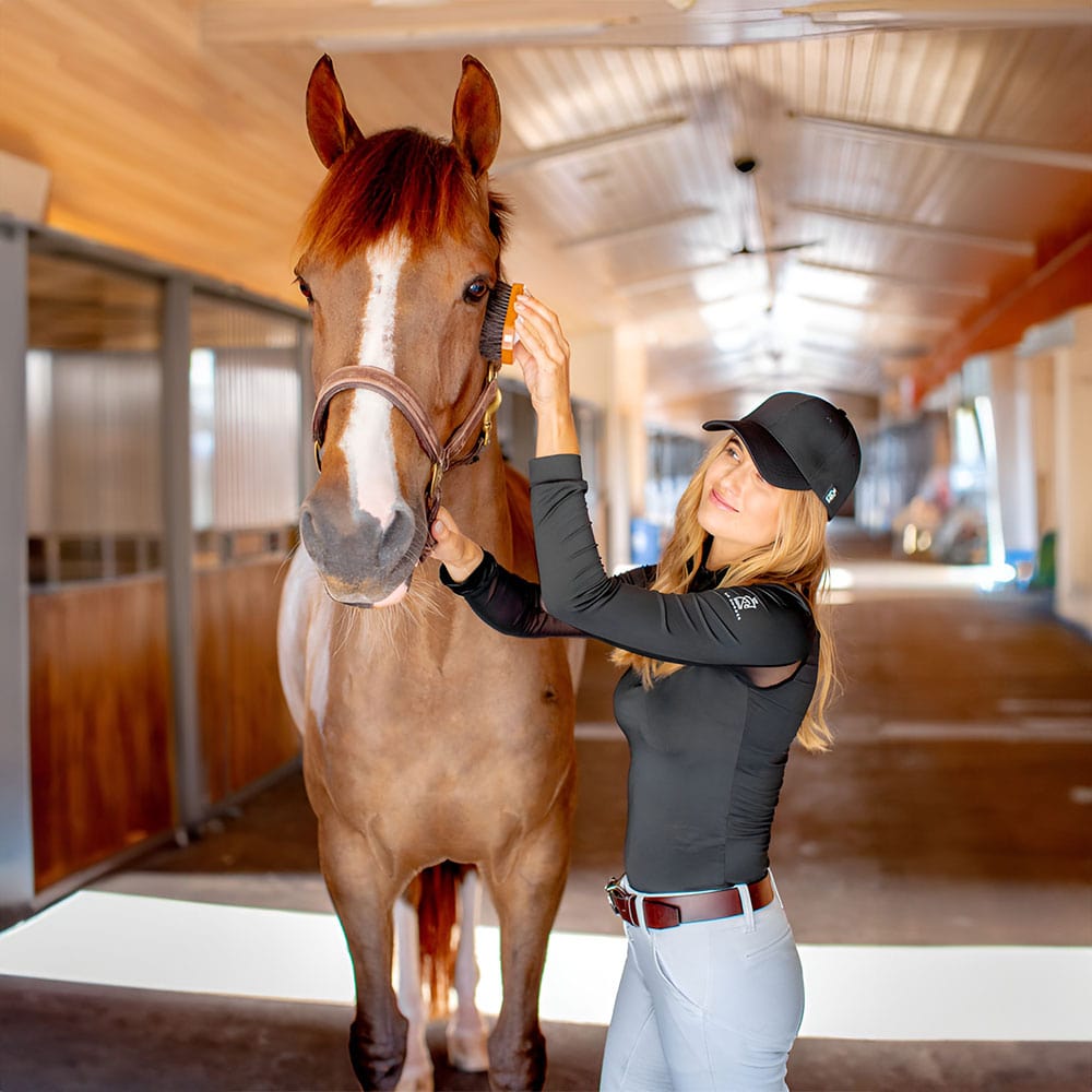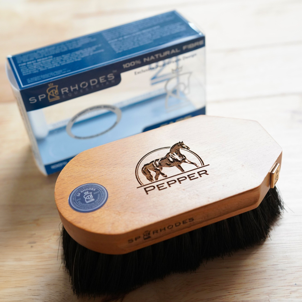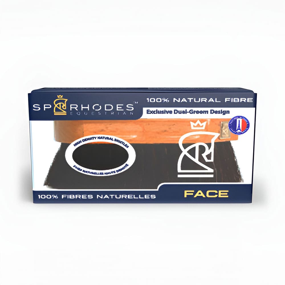The fully customizable SP RHODES Dual-Groom Face Brush is large enough to fit in the palm of your hand and small enough to fit in your pocket. This high-quality horse face brush is ergonomic, convenient and features dense, soft bristles for final touches ringside or before rides at home. Facial horse hygiene is important because a face free of debris, dust and dander will help you to avoid rubs, reduce the likelihood of skin issues and allow for a true bonding experience when you groom.