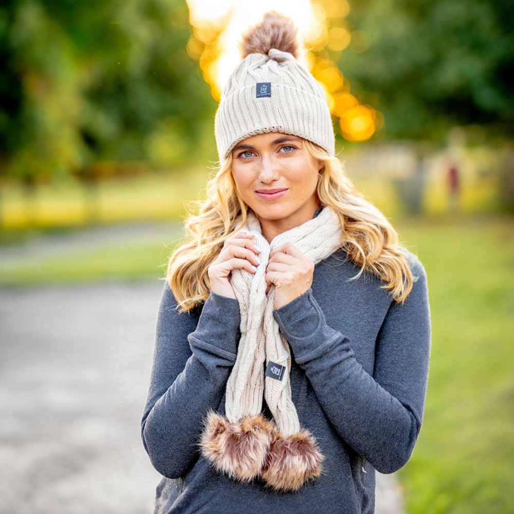 SP RHODES Nordic Cable Knit Pom Pom Beanie