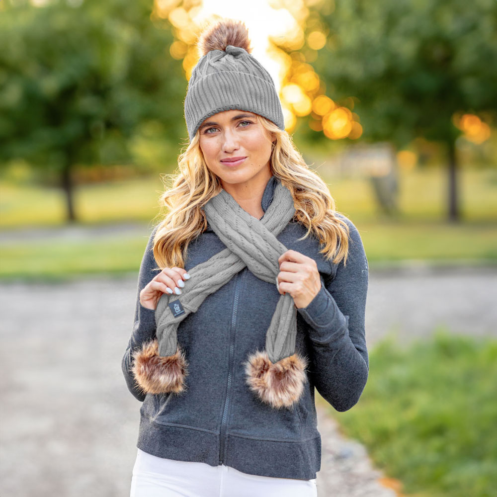 The SP RHODES equestrian Knit Pom Pom hat is the perfect custom equestrian winter beanie that can be embroidered. Take advantage of our special cuff design, specifically designed to allow space for your equestrian logo. We have made this equestrian hat to support our SureStitch embroidery. Soft, naturally thermoregulating fabric with a luxurious faux-fur pom pom makes this custom equestrian hat your #1 choice for Winter warmth.