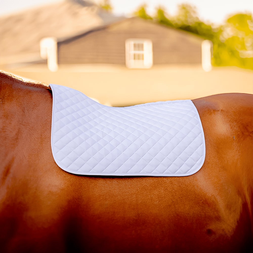 Constructed with breathable, moisture-wicking materials and featuring an anti-slip eurosuede underside, these pads help maintain your horse’s comfort and focus, whether in the show ring or during everyday training.